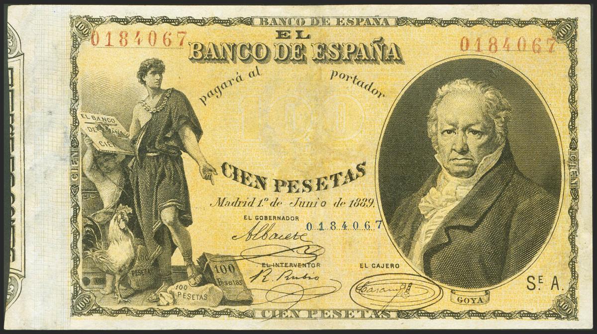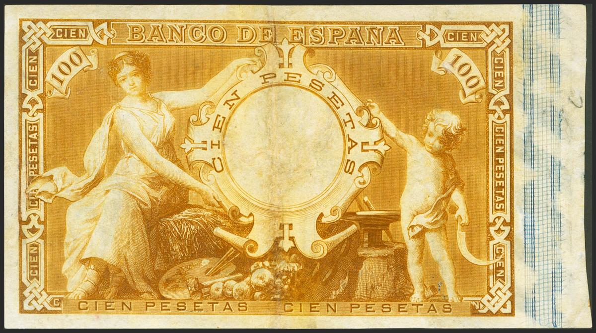 100 Pesetas. 1 de Junio de 1889. Serie A. (Edifil 2021: 299). Raro, reparación central. MBC+.
