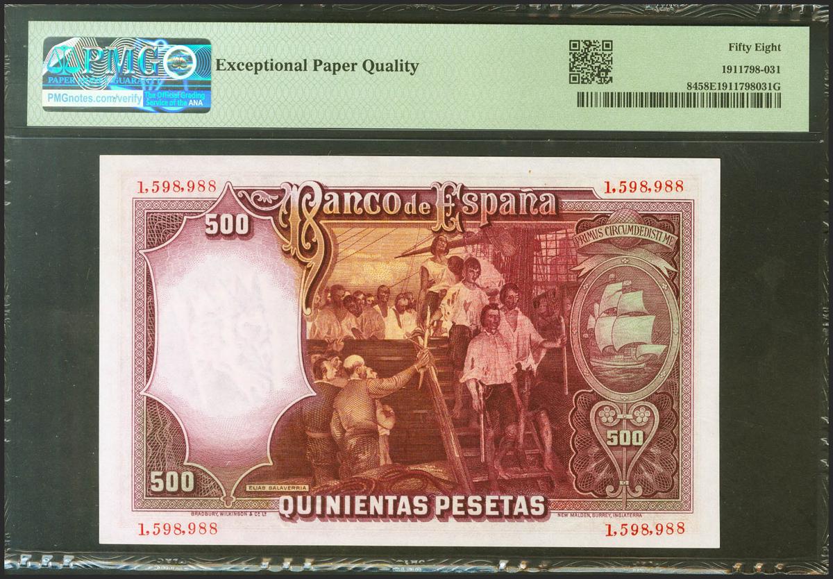 500 Pesetas. 25 de Abril de 1931. Sin serie. (Edifil 2021: 361, Pick: 84). Apresto original. EBC+++. Encapsulado PMG58EPQ.