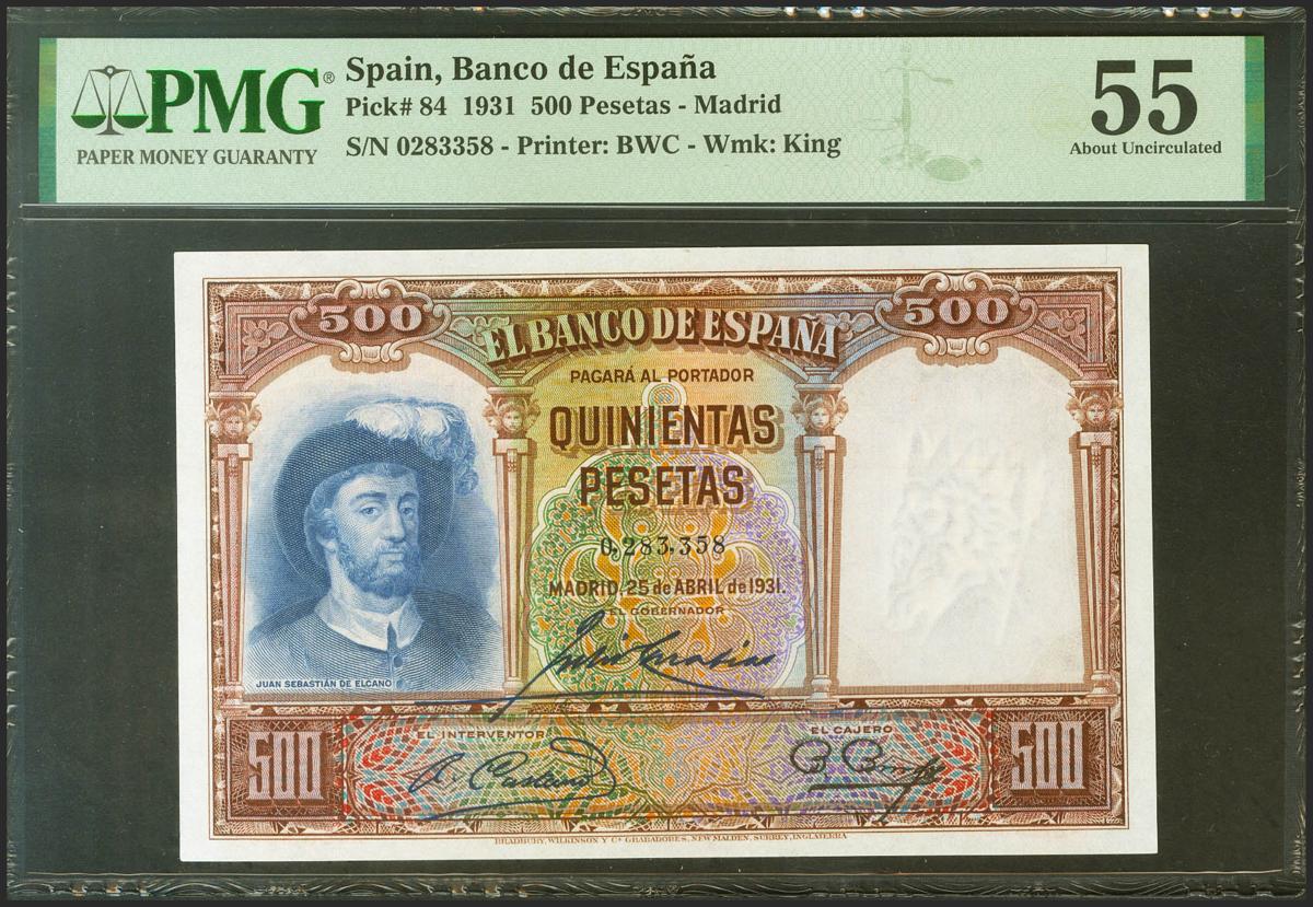 500 Pesetas. 25 de Abril de 1931. Sin serie. (Edifil 2021: 361, Pick: 84). EBC+. Encapsulado PMG55.
