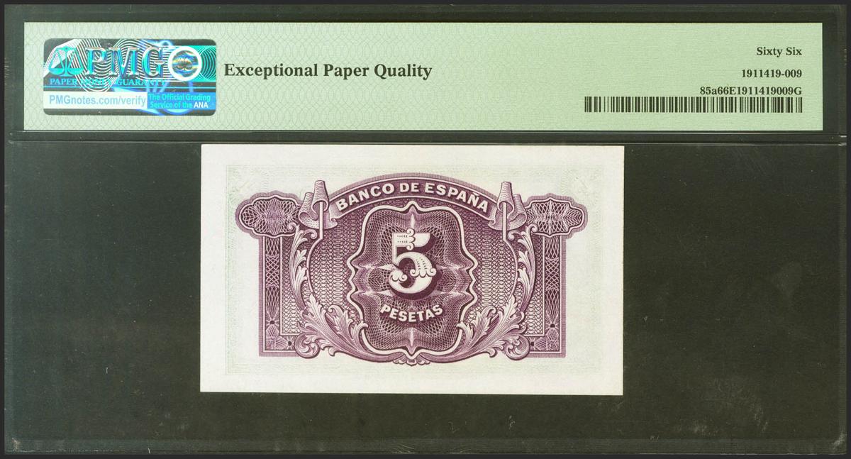 5 Pesetas. 1935. Certificado de Plata. Sin serie. (Edifil 2021: 363, Pick: 85a). Inusual en esta excepcional calidad, apresto original. SC. Encapsulado PMG66EPQ