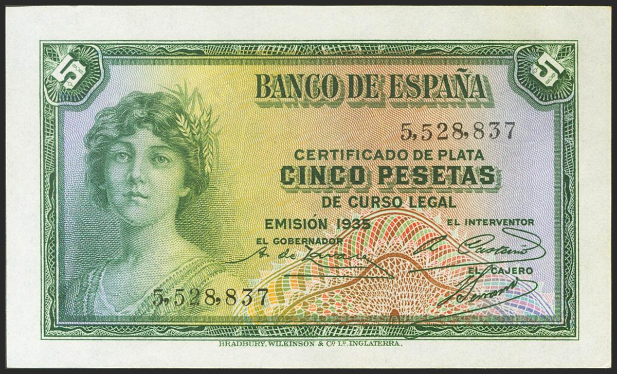 5 Pesetas. 1935. Certificado de Plata. Sin serie. (Edifil 2017: 363). Apresto original. SC.