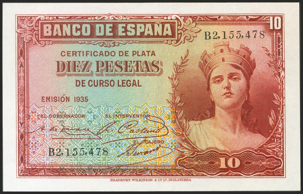 10 Pesetas. 1935. Certificado de Plata. Serie B. (Edifil 2021: 364a). Apresto original. SC.