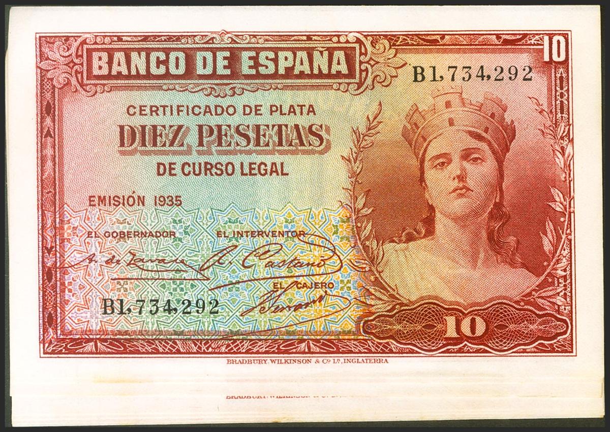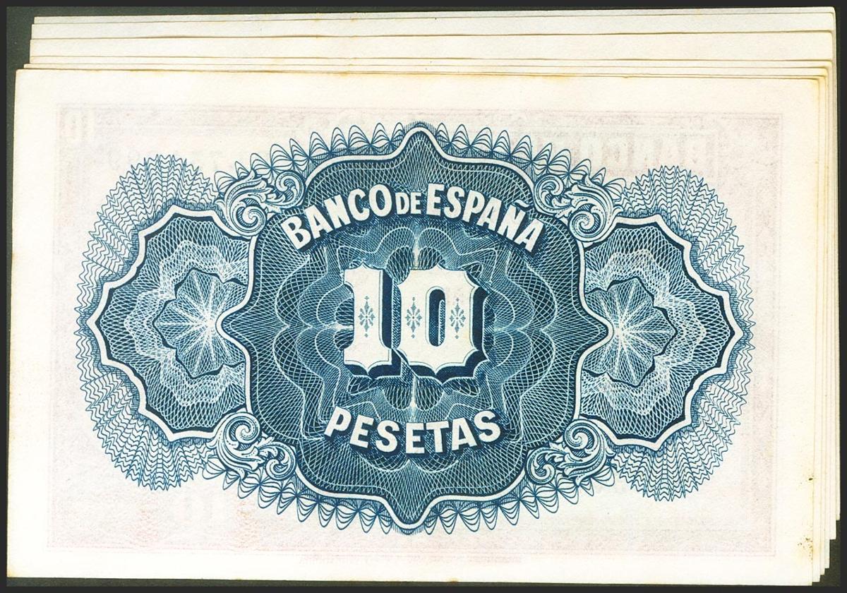 Conjunto de 8 billetes correlativos de 10 Pesetas Certificado de Plata emitidos en 1935 y con la serie B (Edifil 2021: 364a), conservando todo su apresto original. SC/SC-.