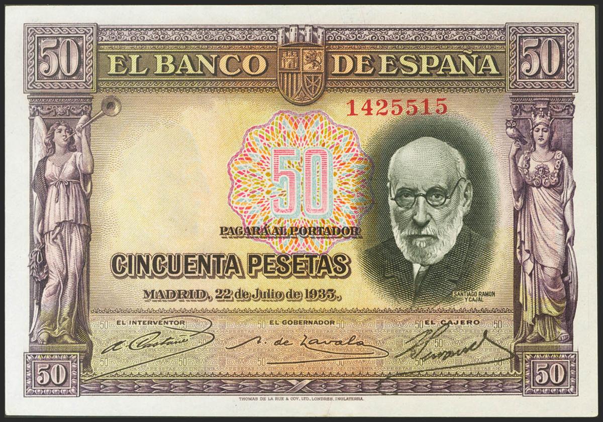 50 Pesetas. 22 de Julio de 1935. Sin serie. (Edifil 2021: 366). Conserva parte de su apresto original. EBC++.