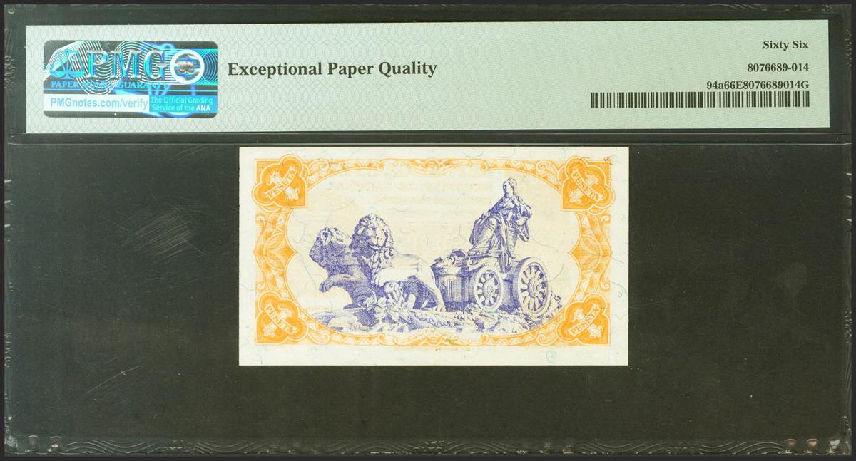 1 Peseta. 1937. Ministerio de Hacienda. Serie A. (Edifil 2021: 392, Pick: 94). Apresto original. SC. Encapsulado PMG66EPQ.