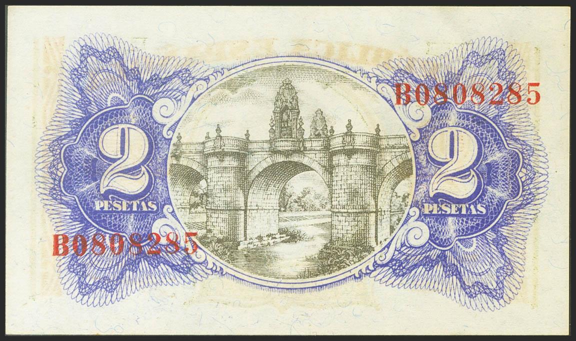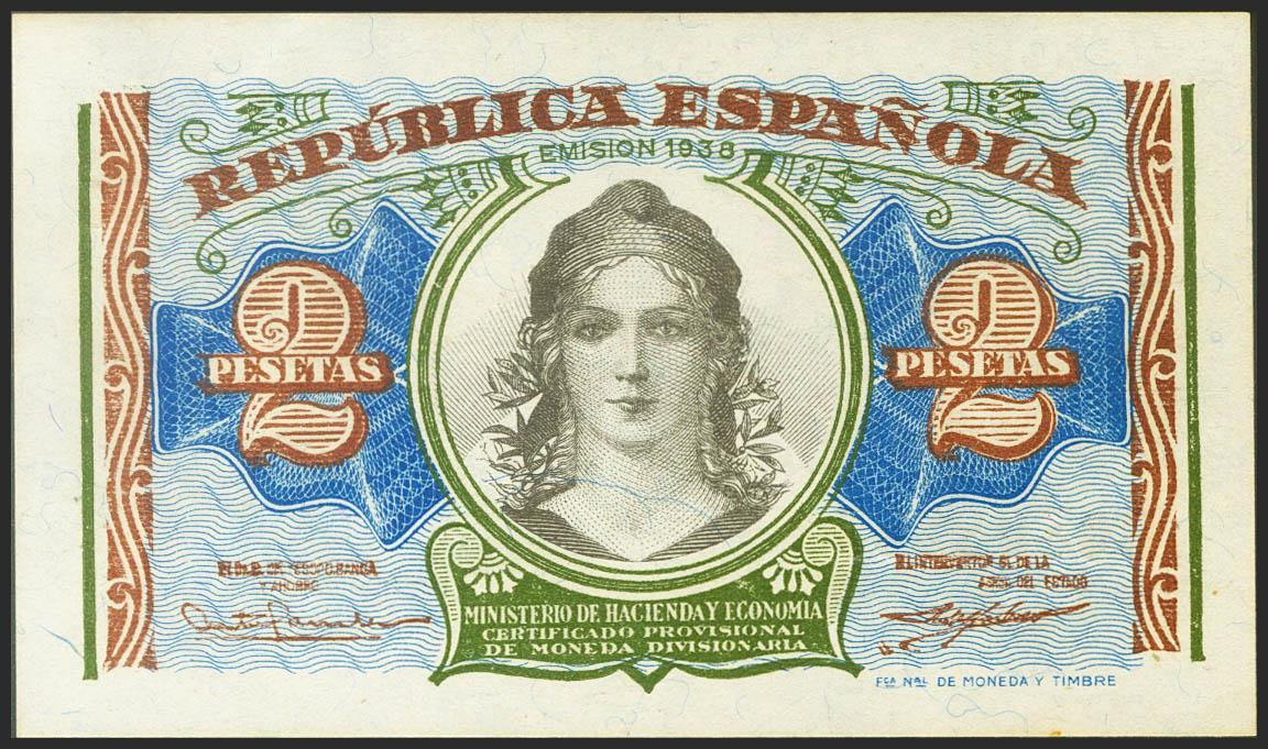 2 Pesetas. 1938. Ministerio de Hacienda. Serie B. (Edifil 2021: 393). Apresto original. SC-.