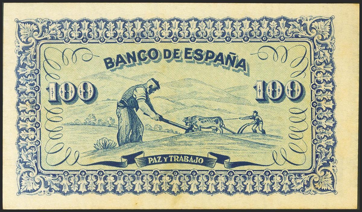 100 Pesetas. Septiembre 1937. Asturias y León. Sin serie. (Edifil 2021: 399). Apresto original y con sombritas del tiempo. SC--.