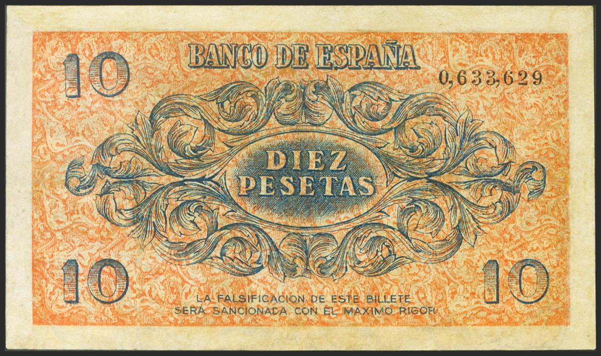 10 Pesetas. 21 de Noviembre de 1936. Sin serie. (Edifil 2021: 418). Inusual y profesionalmente restaurado.