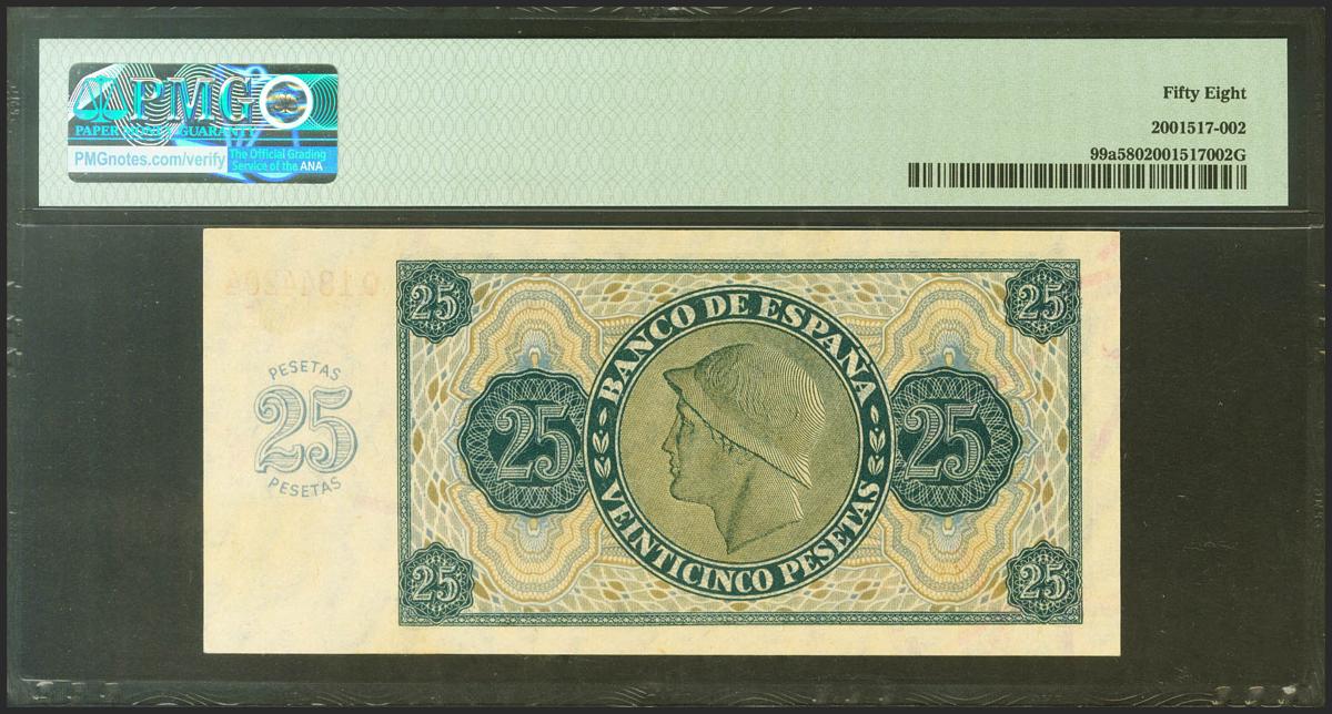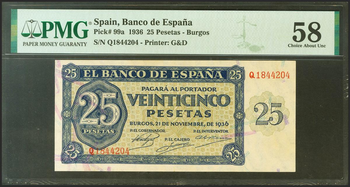 25 Pesetas. 21 de Noviembre de 1936. Serie Q. (Edifil 2021: 419a, Pick: 99a). EBC++. Encapsulado PMG58.
