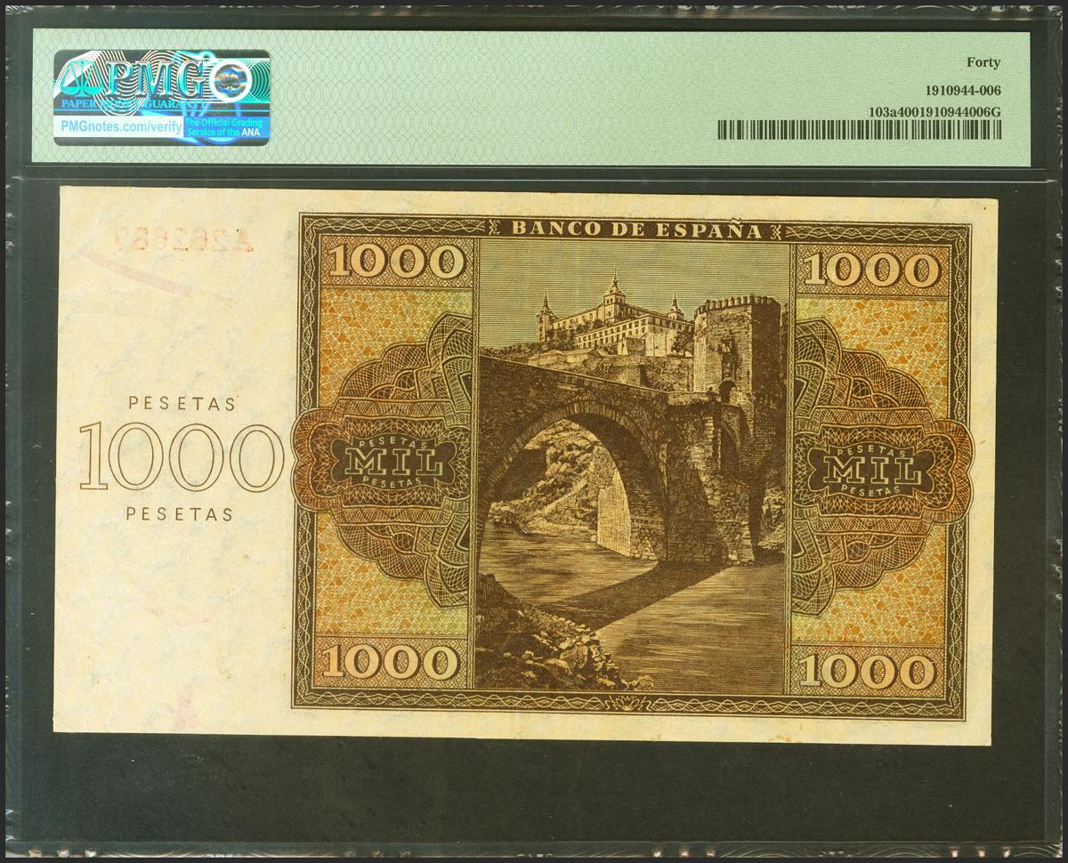 1000 Pesetas. 21 de Noviembre de 1936. Serie A. (Edifil 2021: 423, Pick: 103a). Inusual. EBC-. Encapsulado PMG40.