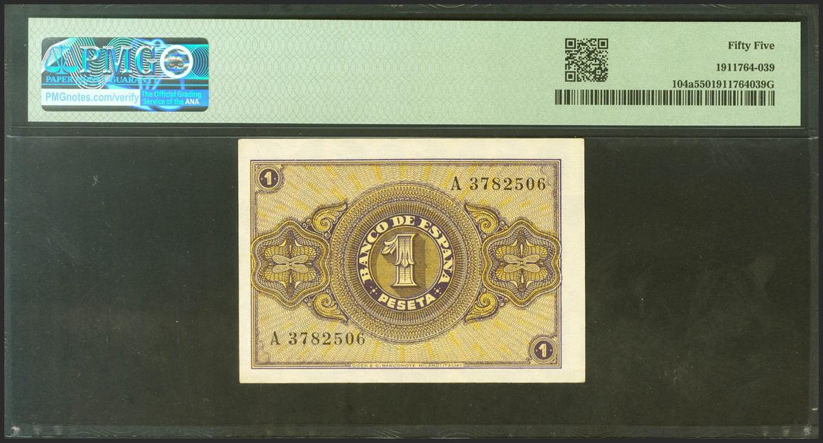 1 Peseta. 12 de Octubre de 1937. Serie A. (Edifil 2021: 425, Pick: 104a). EBC+. Encapsulado PMG55.