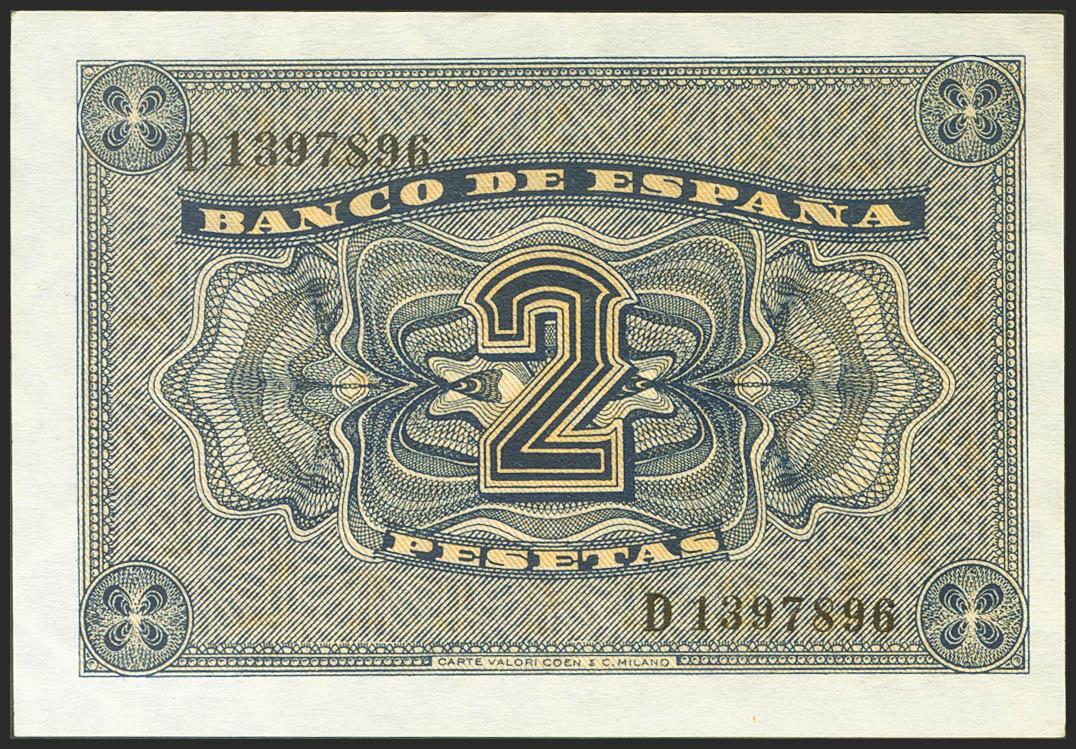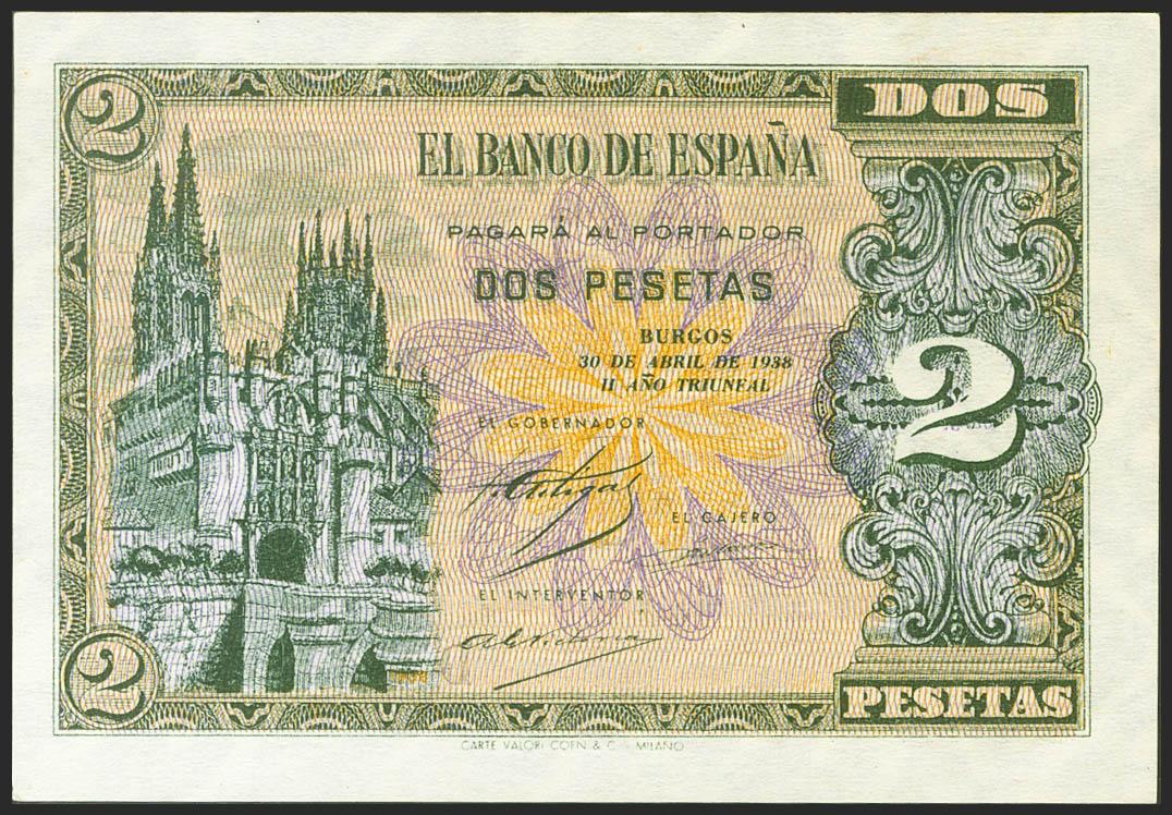 2 Pesetas. 30 de Abril de 1938. Serie D. (Edifil 2021: 429a). Apresto original. SC-.