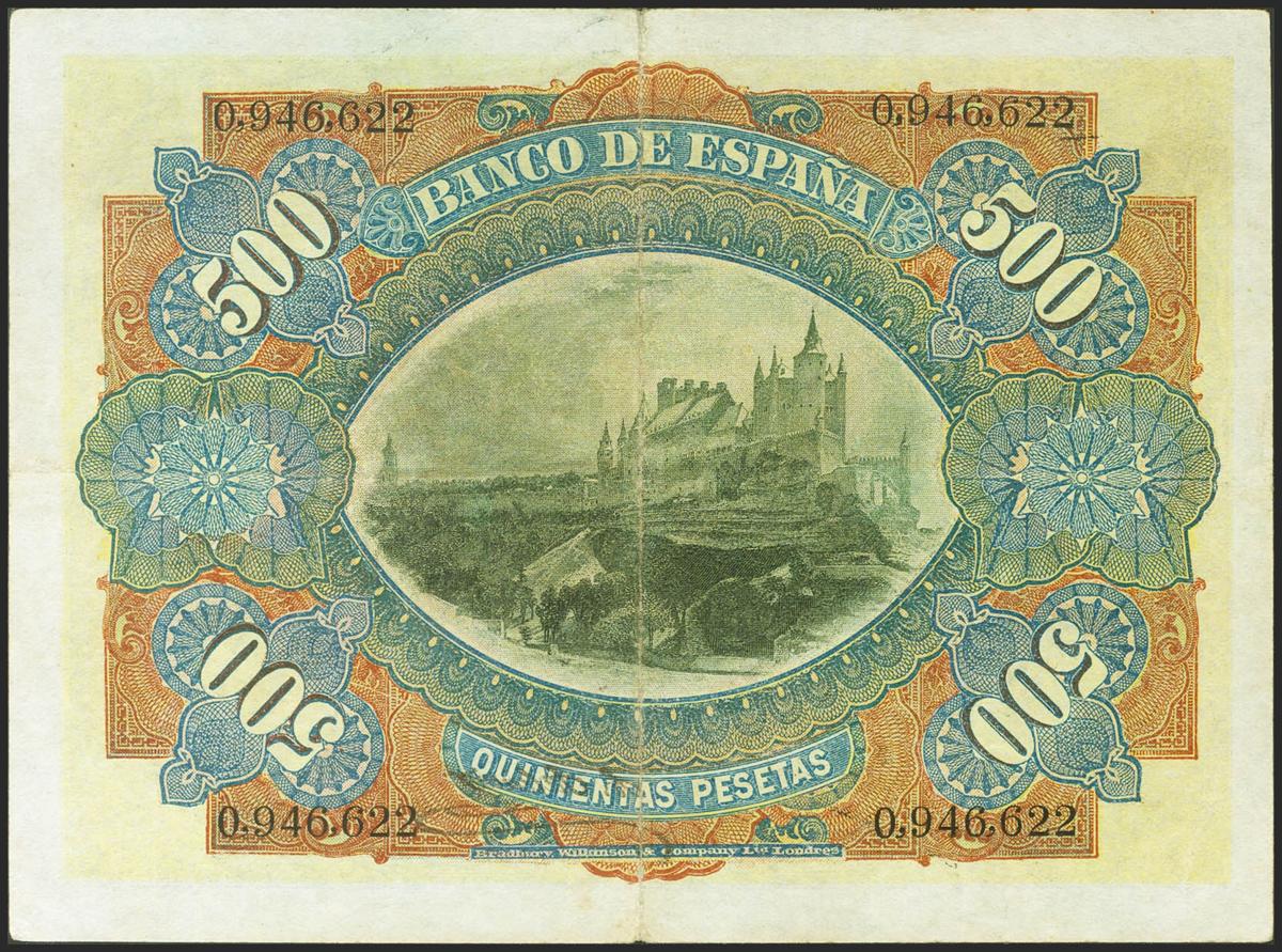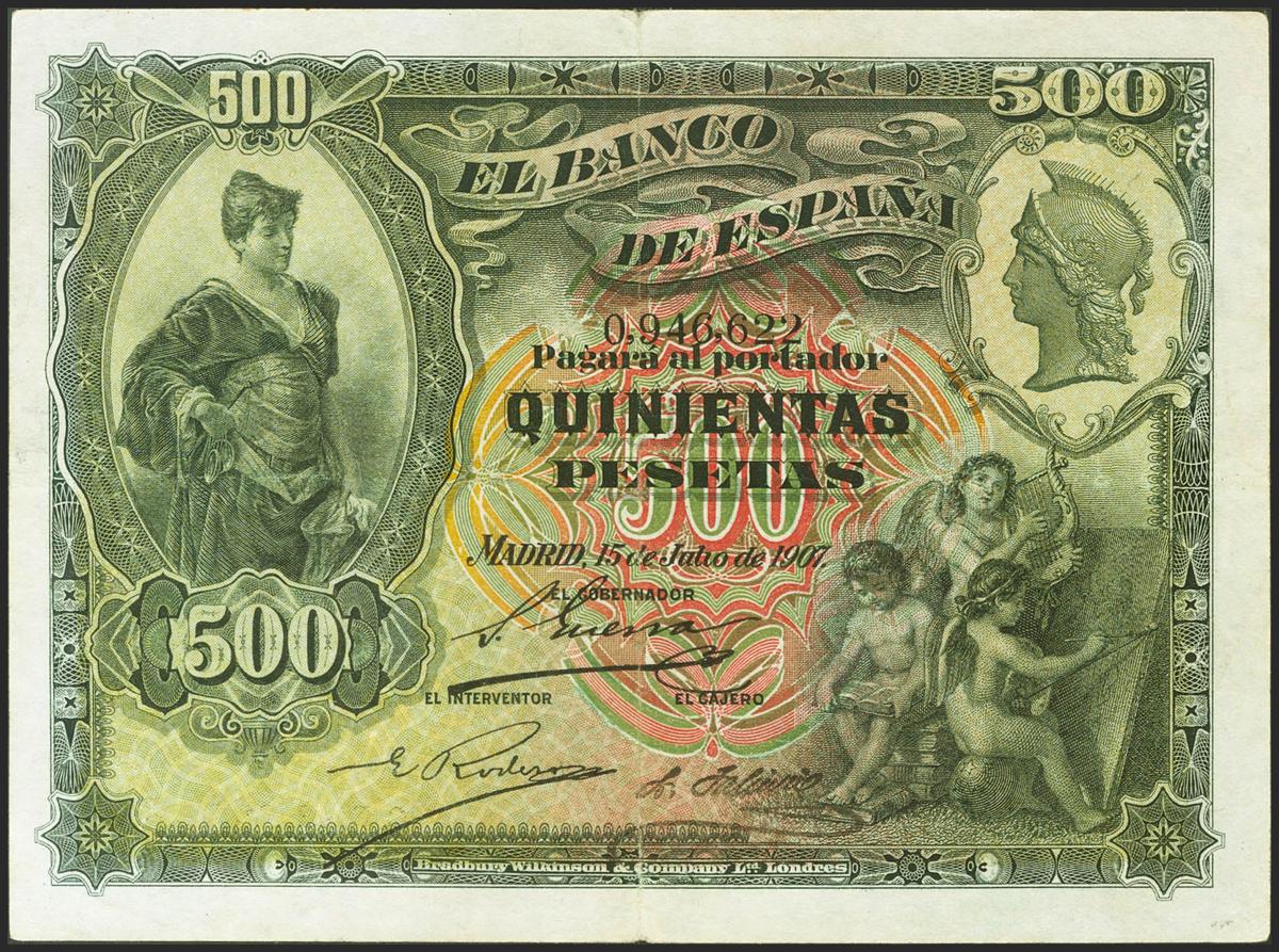 500 Pesetas. 15 de Junio de 1907. Sin serie. (Edifil 2021: 321). Inusual, especialmente sin reparaciones. MBC.