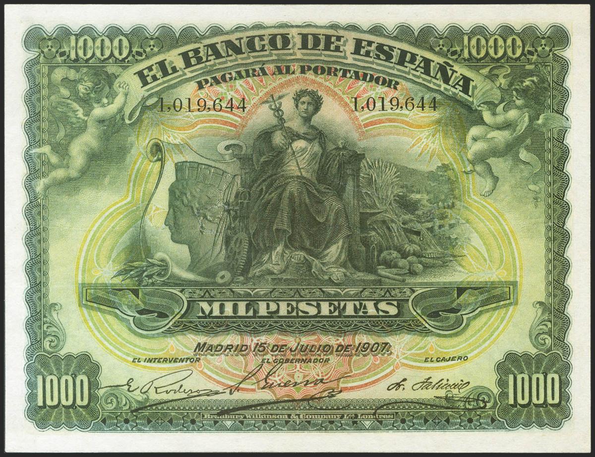 1000 Pesetas. 15 de Julio de 1906. Sin serie. (Edifil 2017: 322). Reparado, precioso aspecto. MBC.