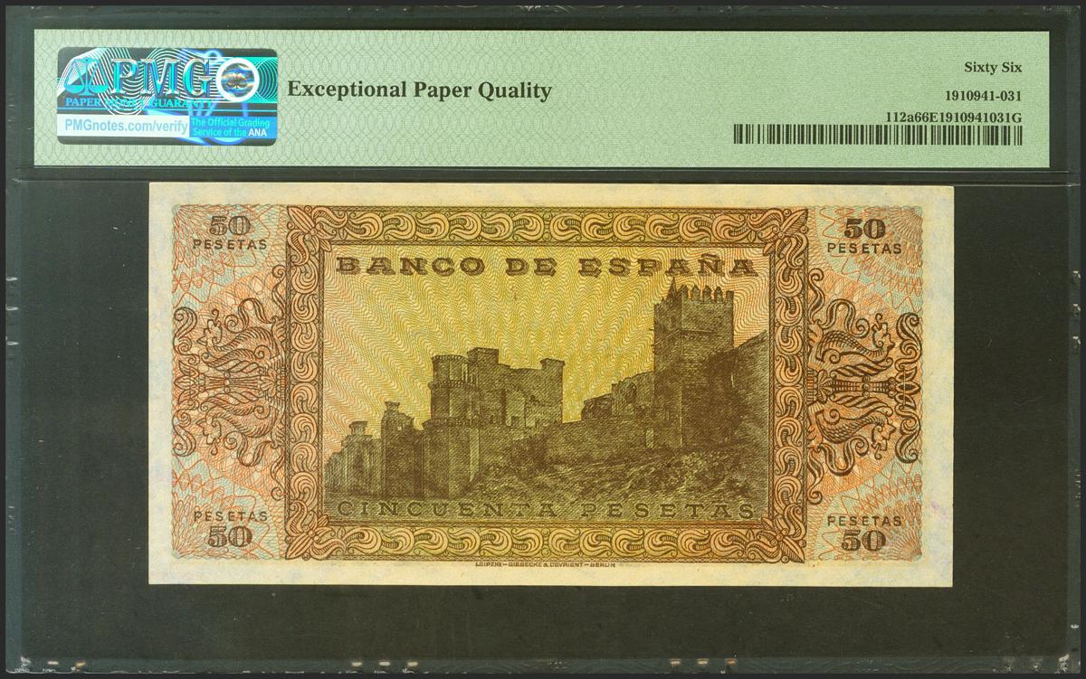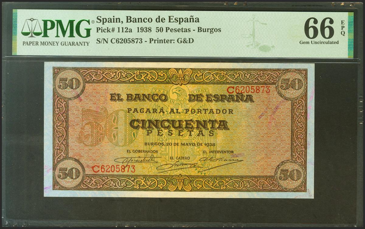50 Pesetas. 20 de Mayo de 1938. Serie C. (Edifil 2021: 431a, Pick: 112a). Raro en esta calidad, apresto original. SC. Encapsulado PMG66EPQ.