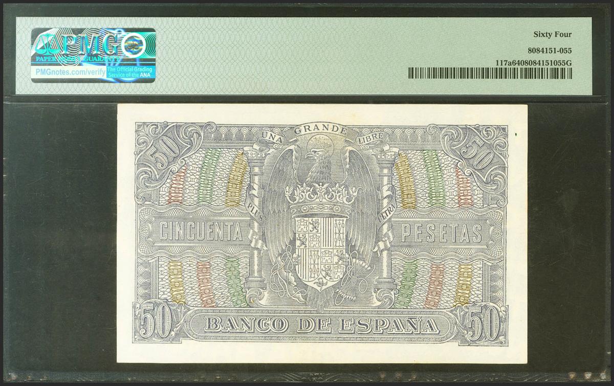 50 Pesetas. 9 de Enero de 1940. Serie D. (Edifil 2021: 437a, Pick: 117a). Inusual en esta calidad. SC. Encapsulado PMG64.