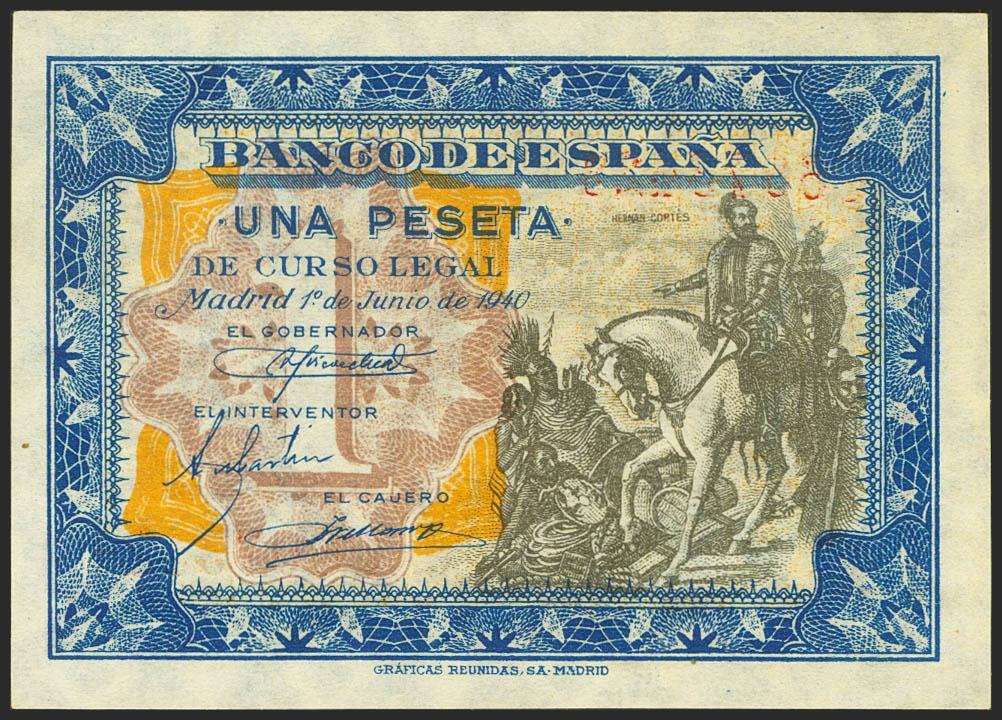 1 Peseta. 1 de Junio de 1940. Serie C. (Edifil 2021: 441a). Conserva la gran parte del apresto original. EBC+++.