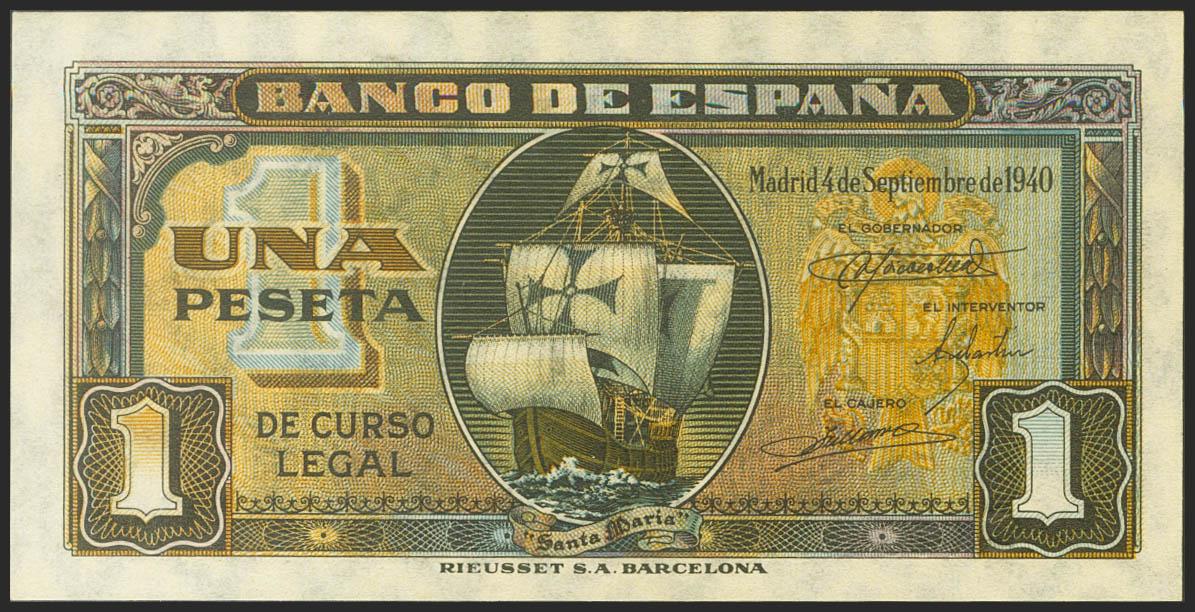 1 Peseta. 4 de Septiembre de 1940. Serie C. (Edifil 2021: 442a). Apresto original. SC.