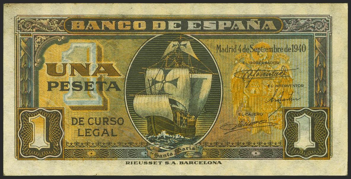1 Peseta. 4 de Septiembre de 1940. Serie C. (Edifil 2021: 442a). Conservando parte de su apresto original. EBC.