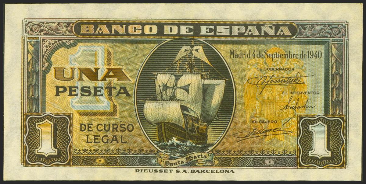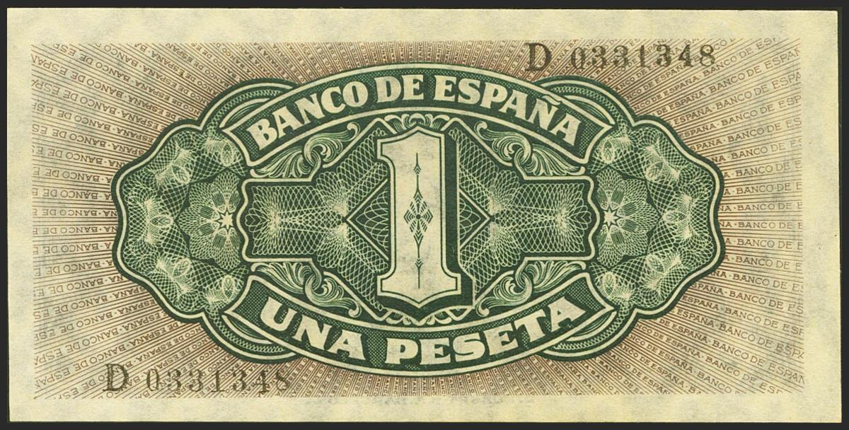 1 Peseta. 4 de Septiembre de 1940. Serie D. (Edifil 2021: 442a). Conserva todo su apresto original. SC.