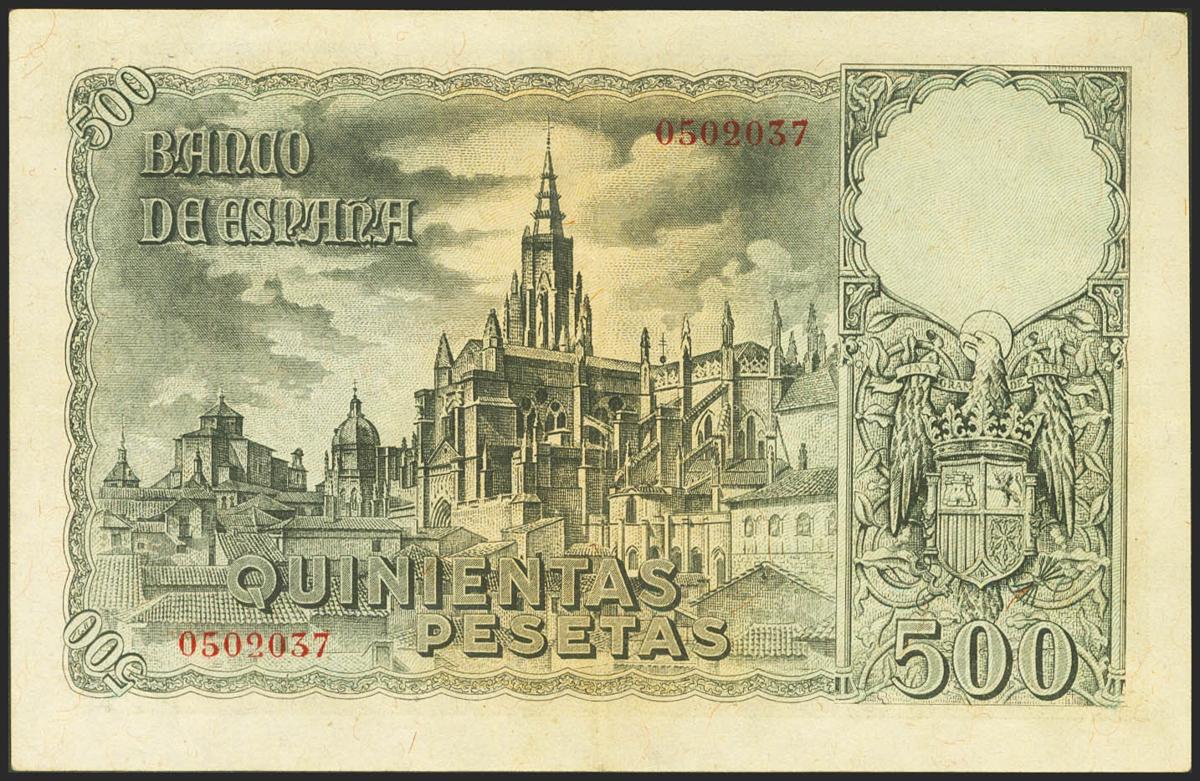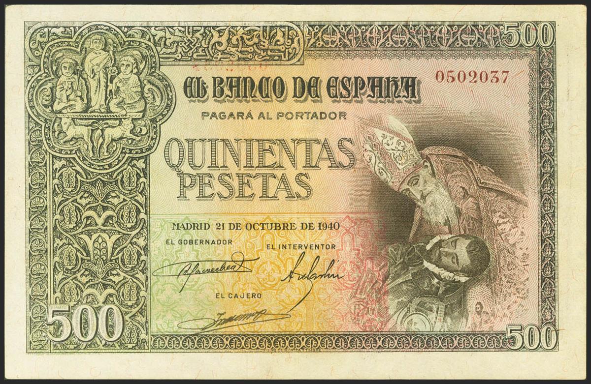 500 Pesetas. 21 de Octubre de 1940. Sin serie. (Edifil 2021: 444). Inusual en esta calidad conservando parte de su apresto original, billete enormemente atractivo. EBC.