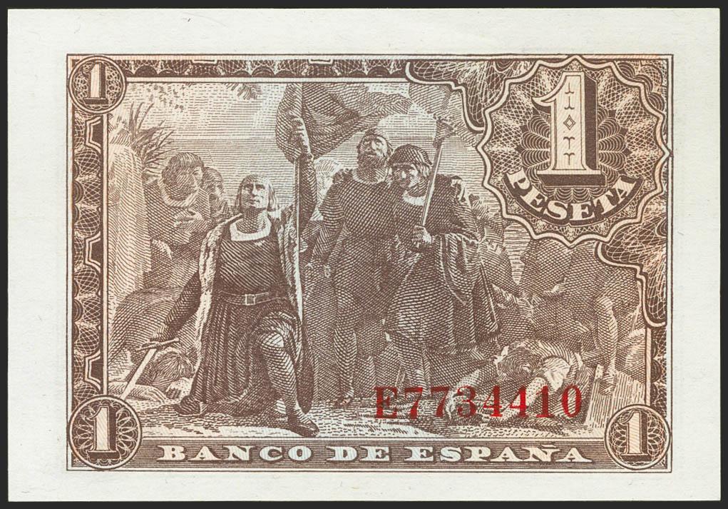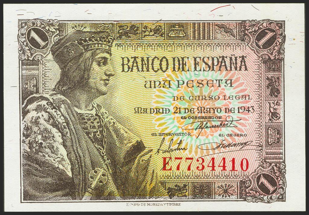 1 Peseta. 21 de Mayo de 1943. Serie E. (Edifil 2021: 447a). Apresto original. SC-.