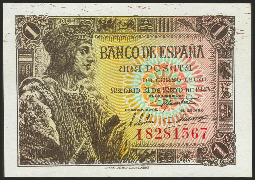 1 Peseta. 21 de Mayo de 1943. Serie I. (Edifil 2021: 447a). Apresto original. SC.