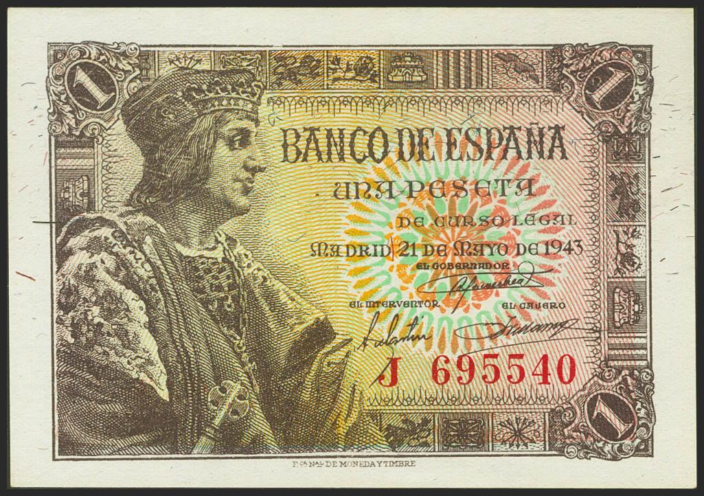 1 Peseta. 21 de Mayo de 1943. Serie J. (Edifil 2021: 447a). Apresto original. SC.