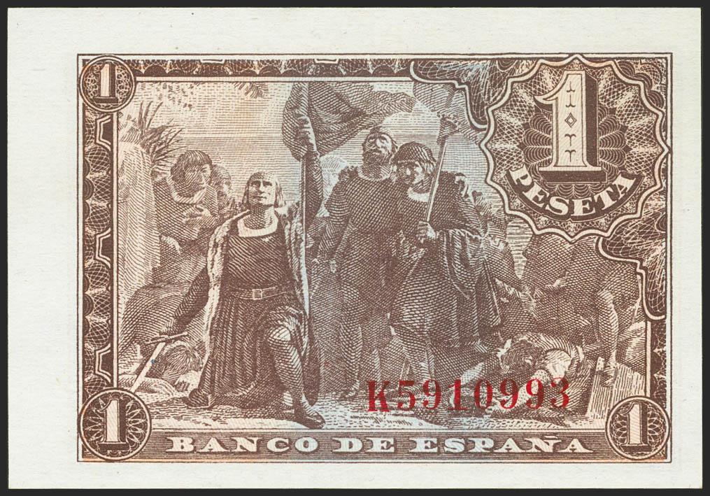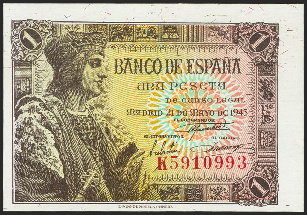 1 Peseta. 21 de Mayo de 1943. Serie K. (Edifil 2021: 447a). Apresto original. SC.