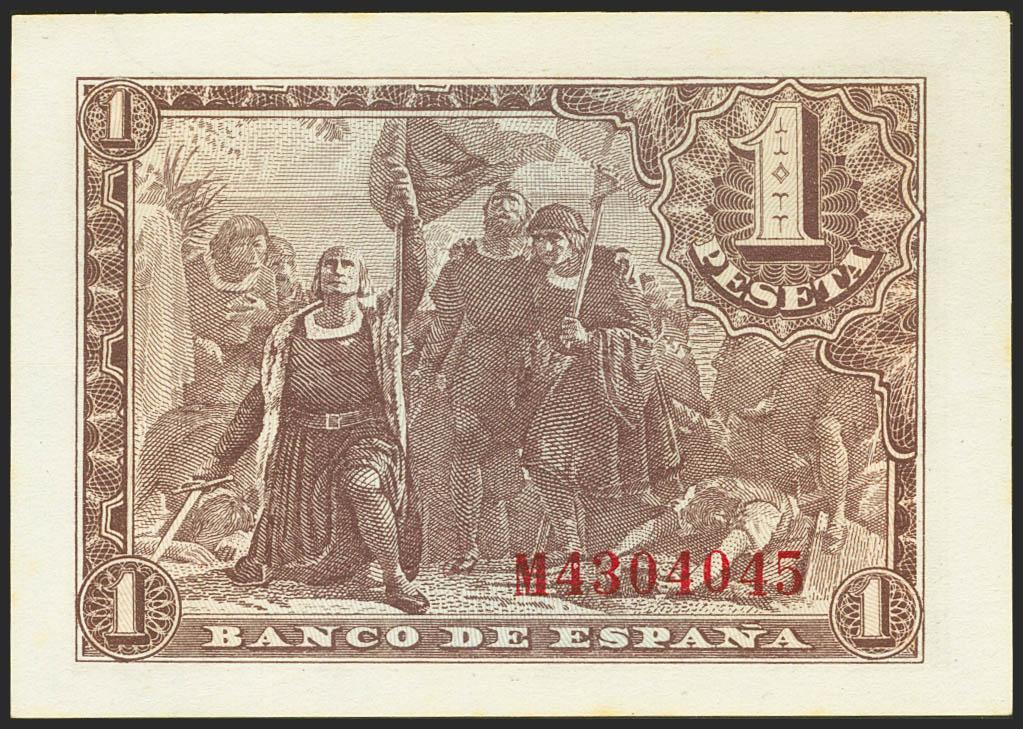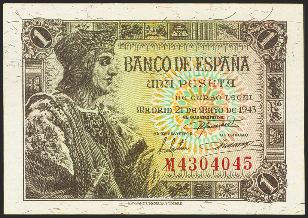 1 Peseta. 21 de Mayo de 1943. Serie M. (Edifil 2021: 447a). Apresto original. SC.