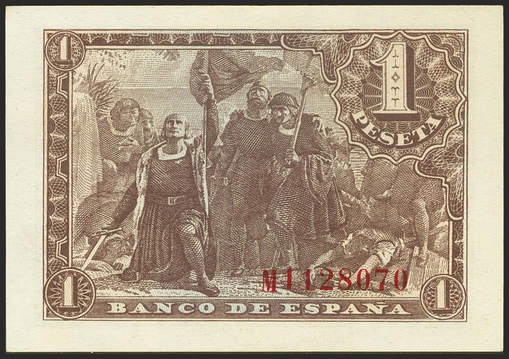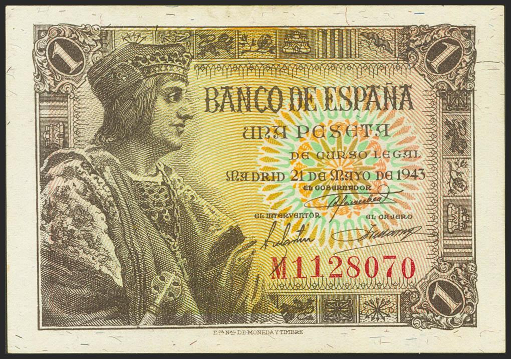 1 Peseta. 21 de Mayo de 1943. Serie M. (Edifil 2021: 447a). Apresto original. EBC+.