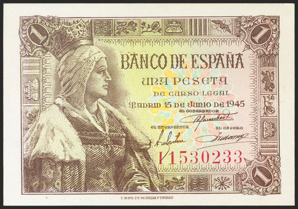 1 Peseta. 15 de Junio de 1945. Serie I. (Edifil 2021: 448a). Apresto original. SC-.