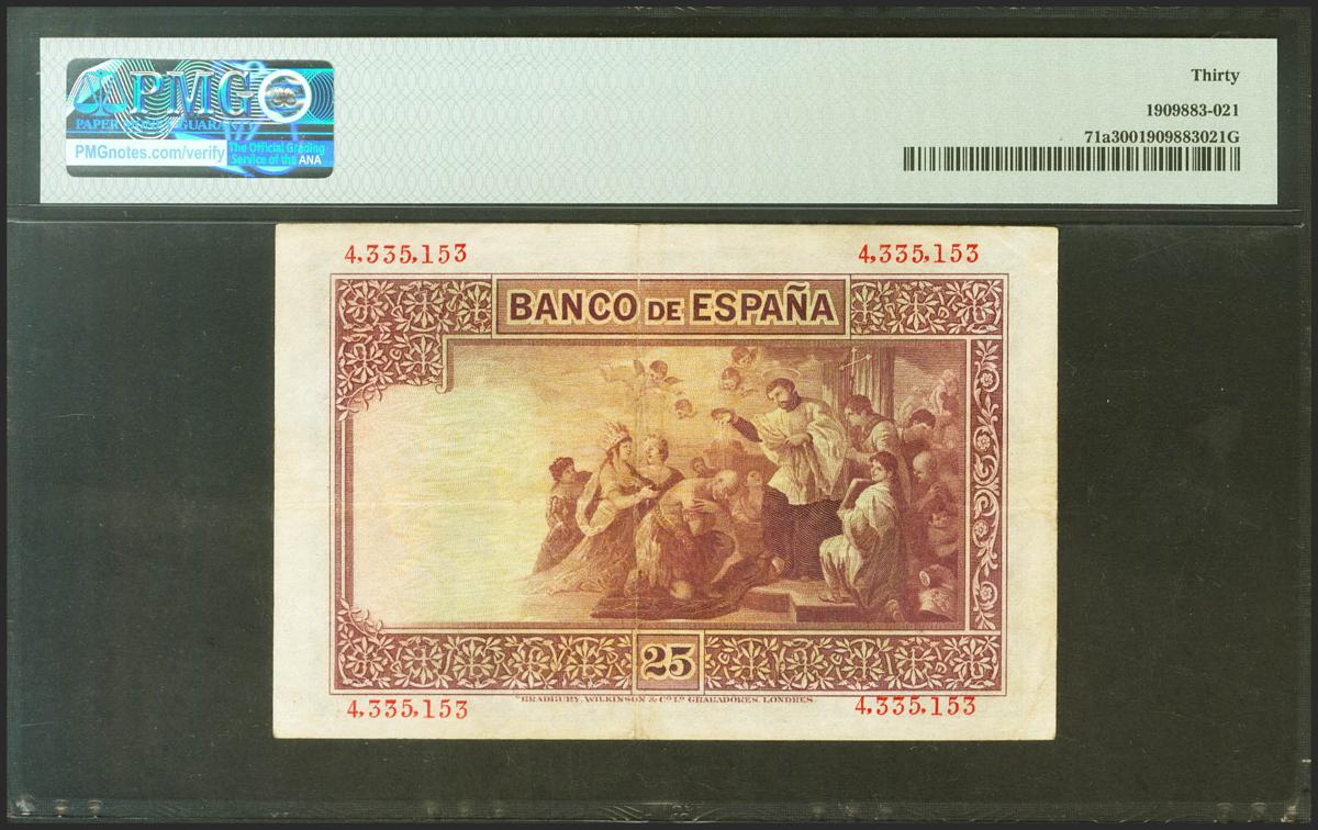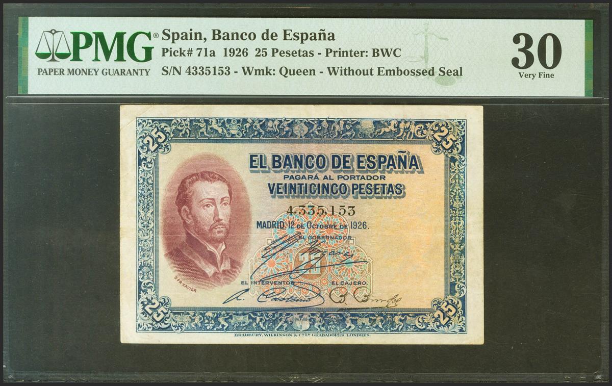 25 Pesetas. 12 de Octubre de 1926. Sin serie. (Edifil 2021: 325, Pick: 71a). EBC-. Encapsulado PMG35.