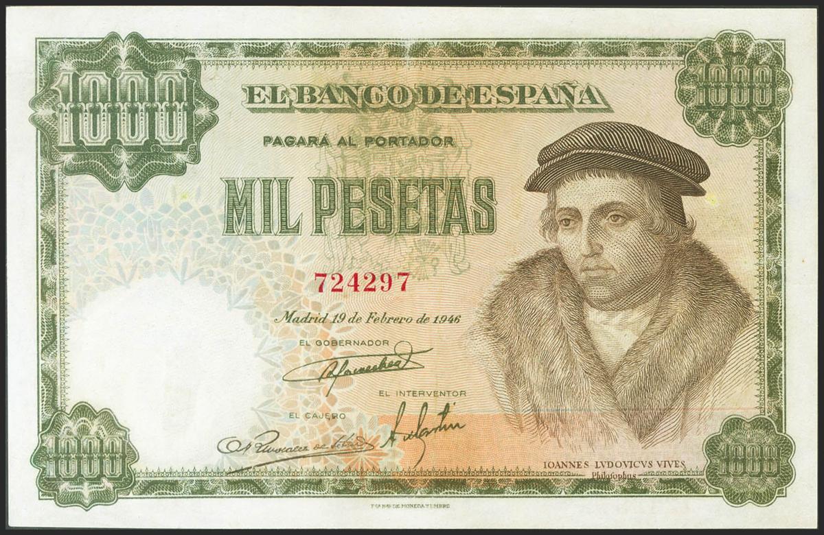 1000 Pesetas. 19 de Febrero de 1946. Sin serie. (Edifil 2021: 453). MBC+