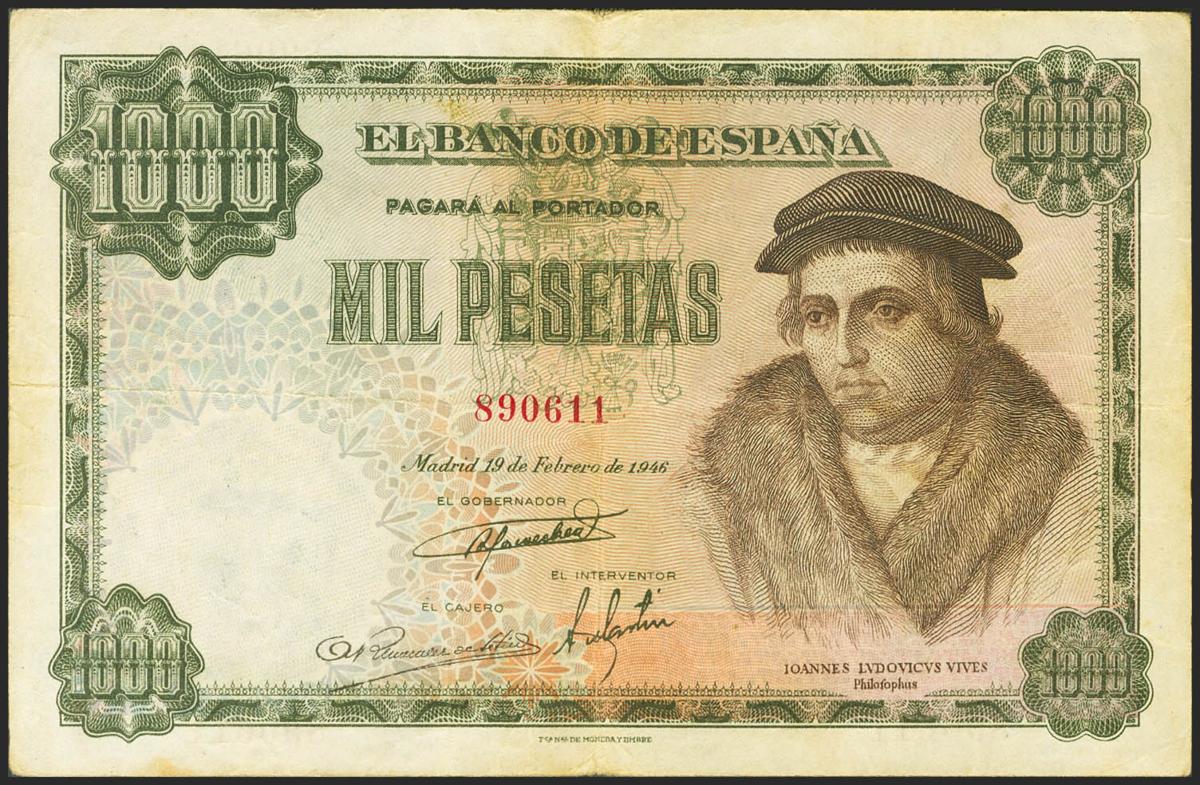 1000 Pesetas. 19 de Febrero de 1946. Sin serie. (Edifil 2021: 453). MBC-.