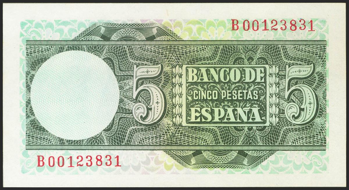 5 Pesetas. 15 de Marzo de 1948. Serie B. (Edifil 2021: 455a). Apresto original. EBC+.