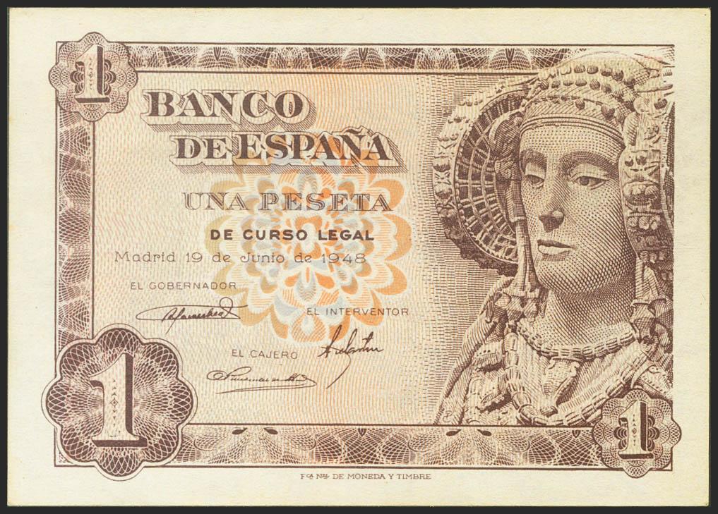 1 Peseta. 19 de Junio de 1948. Sin serie. (Edifil 2021: 457). SC-.