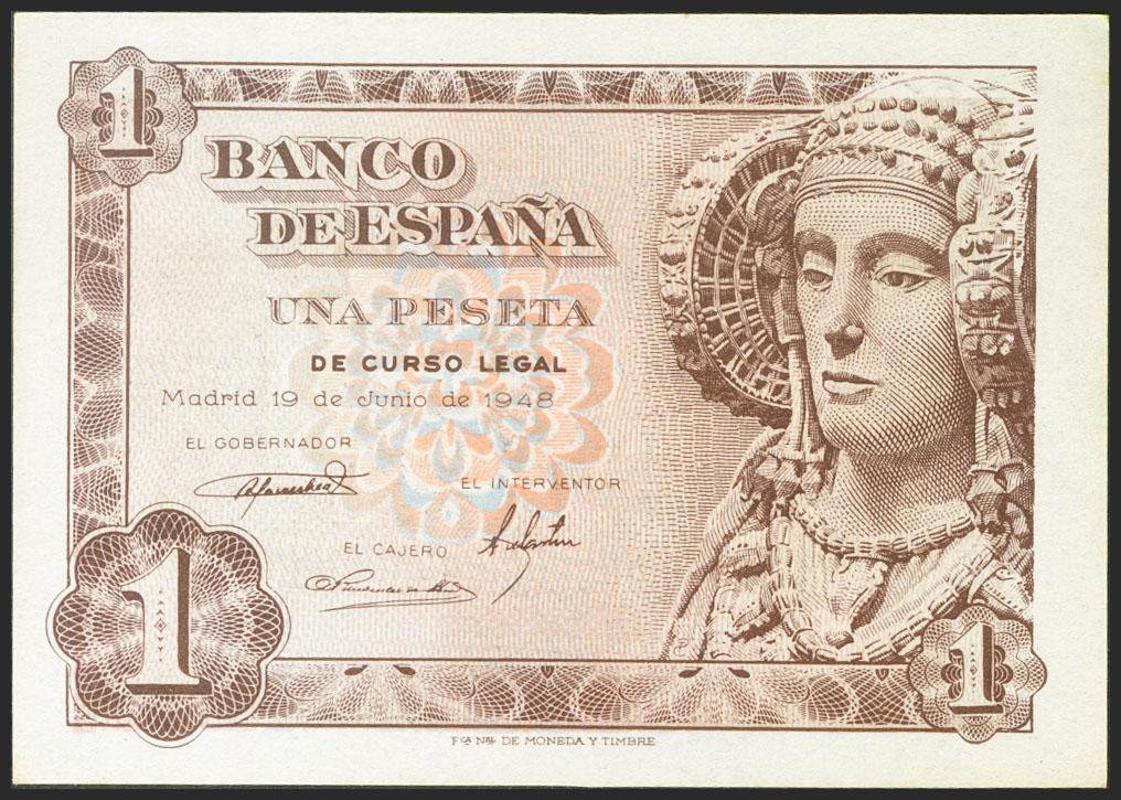 1 Peseta. 19 de Junio de 1948. Serie J. (Edifil 2021: 457a). Apresto original. SC-.
