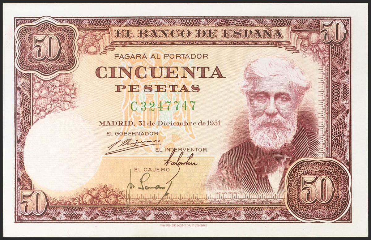 50 Pesetas. 31 de Diciembre de 1951. Serie C. (Edifil 2021: 462a). Conserva gran parte de su apresto original. EBC.
