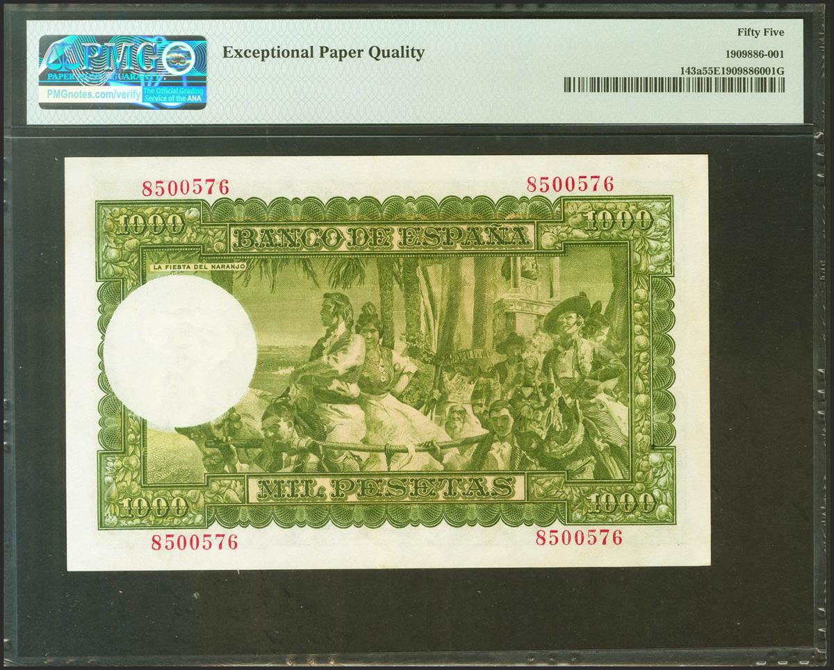 1000 Pesetas. 31 de Diciembre de 1951. Sin serie. (Edifil 2021: 463, Pick: 143a). Apresto original. EBC+. Encapsulado PMG55EPQ.