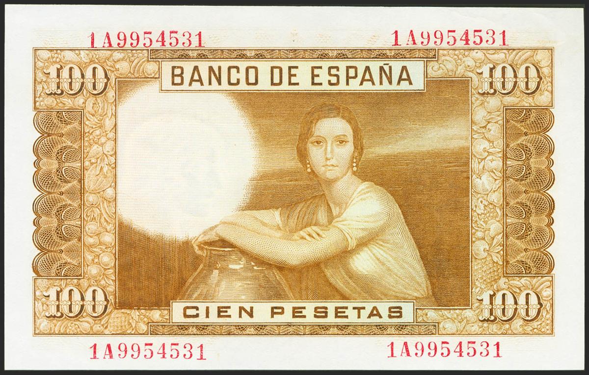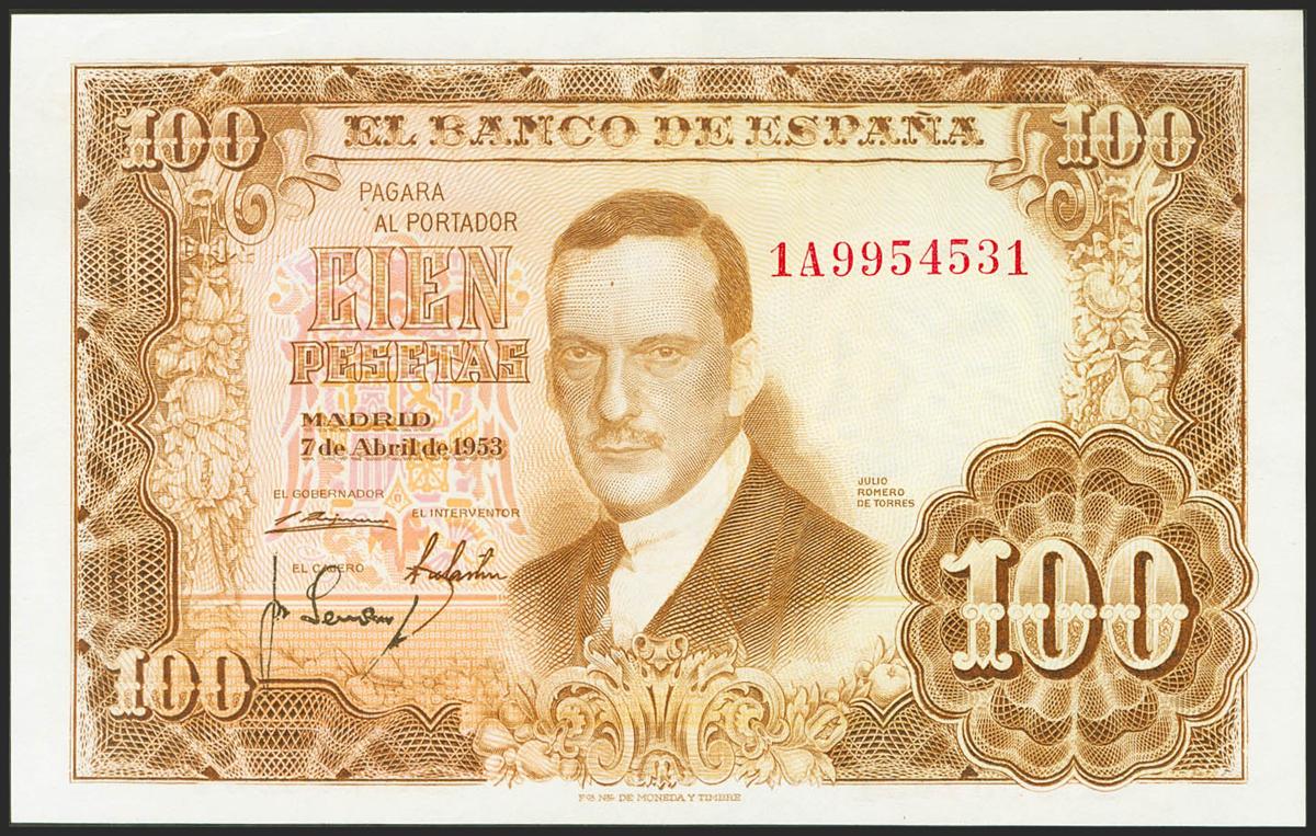 100 Pesetas. 7 de Abril de 1953. Serie 1A. (Edifil 2021: 464c). Apresto original. SC-