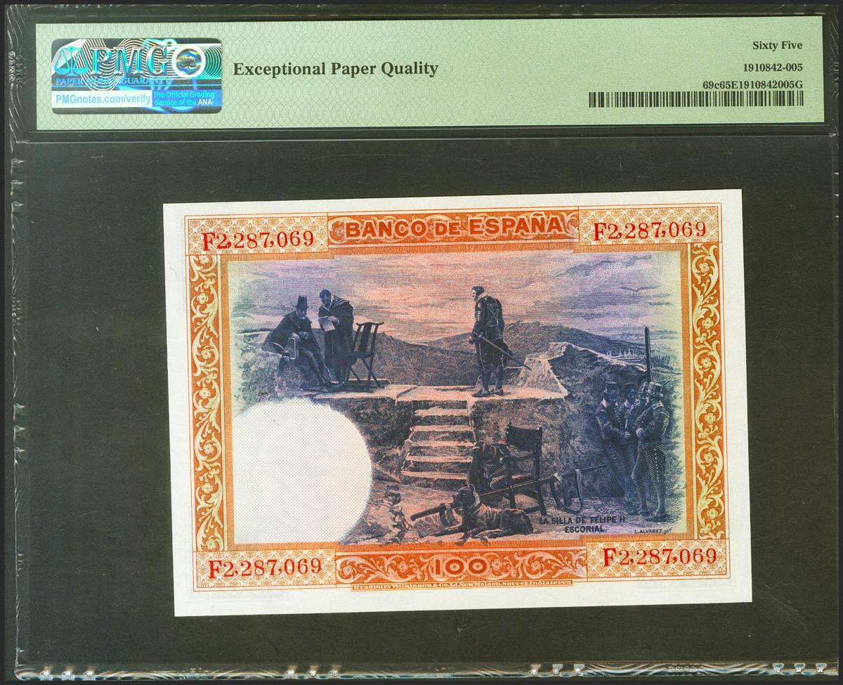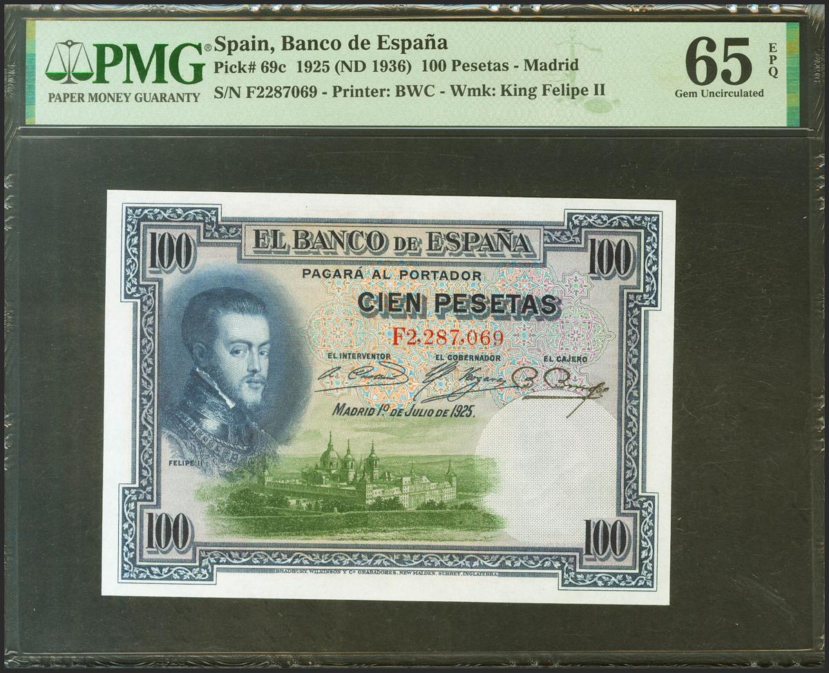 100 Pesetas. 1 de Julio de 1925. Serie F. (Edifil 2021: 350, Pick: 69c). Apresto original. SC. Encapsulado PMG65EPQ.