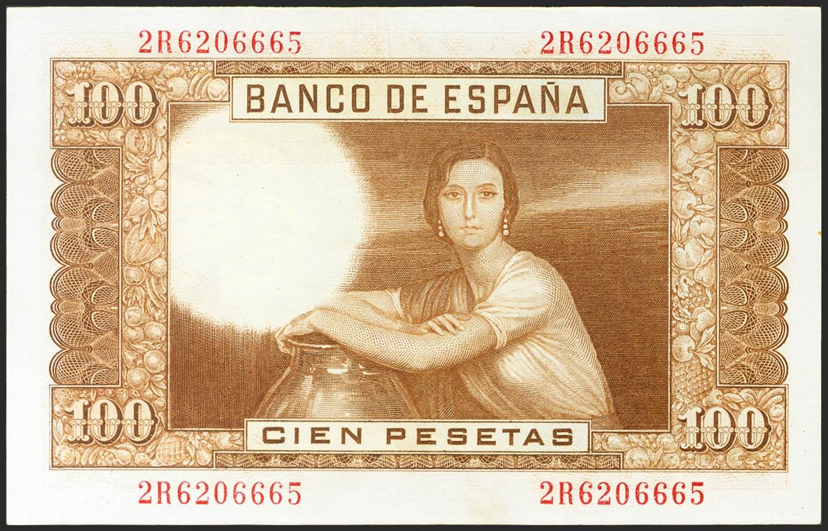 100 Pesetas. 7 de Abril de 1953. Serie 2R. (Edifil 2021: 464c). Apresto original. SC-.