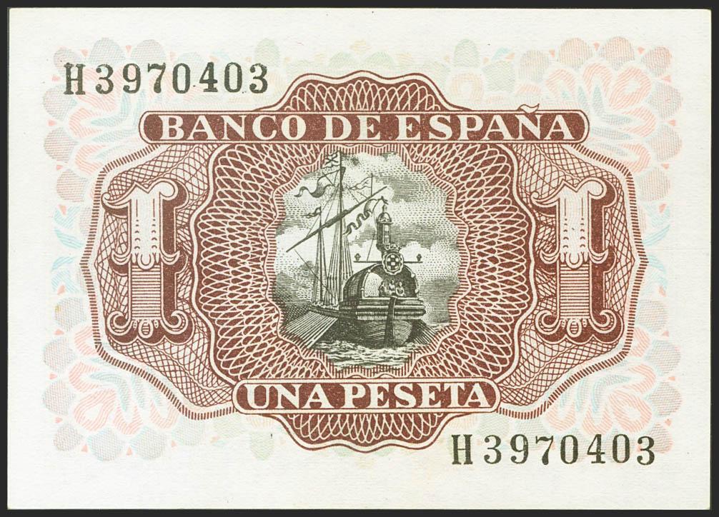 1 Peseta. 22 de Julio de 1953. Serie H. (Edifil 2021: 465a). Apresto original. SC-.