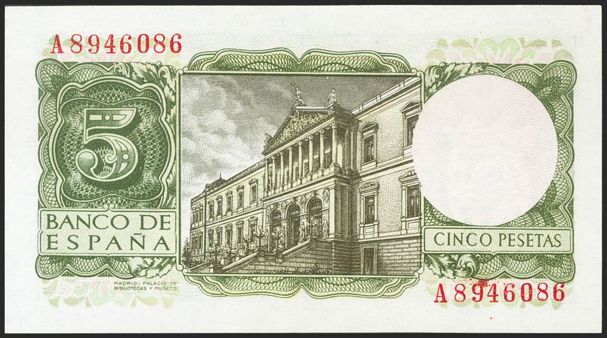 5 Pesetas. 22 de Julio de 1954. Serie A. (Edifil 2017: 466a). Apresto original. SC-.