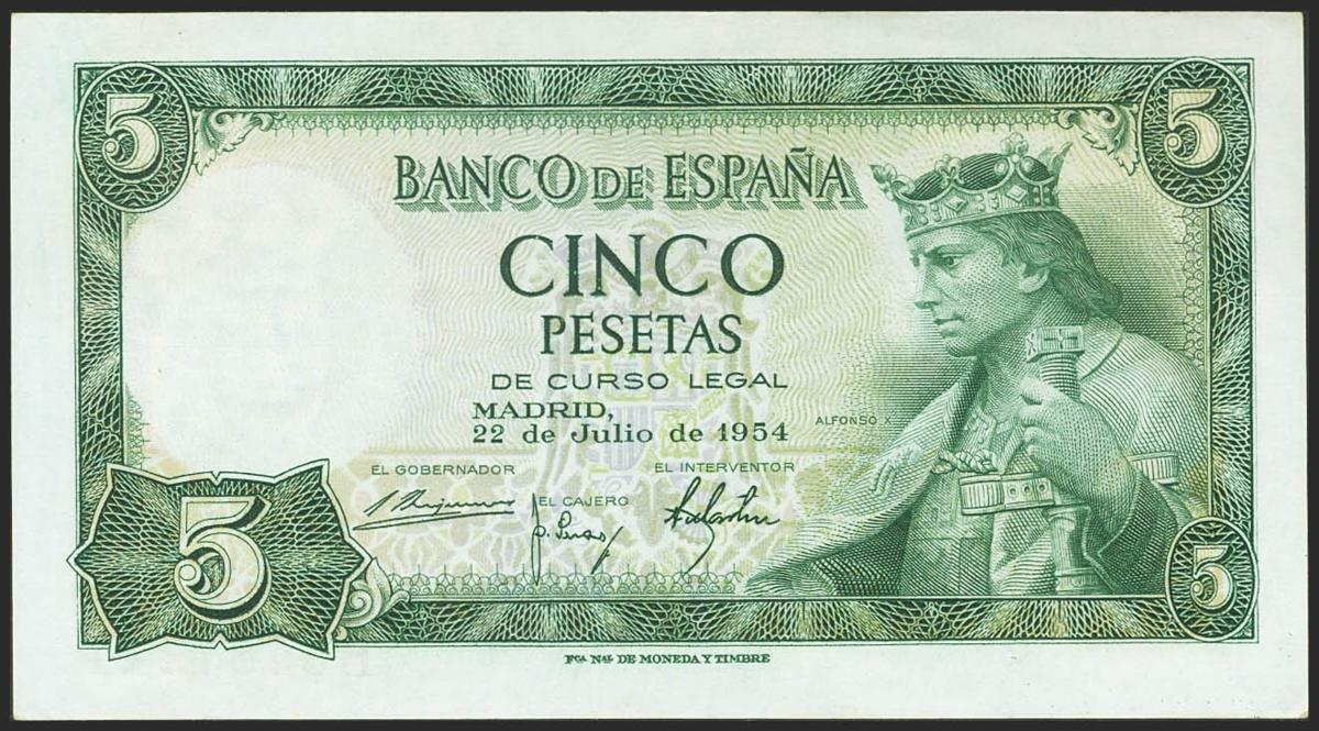 5 Pesetas. 22 de Julio de 1954. Serie B. (Edifil 2021: 466a). Apresto original. SC.