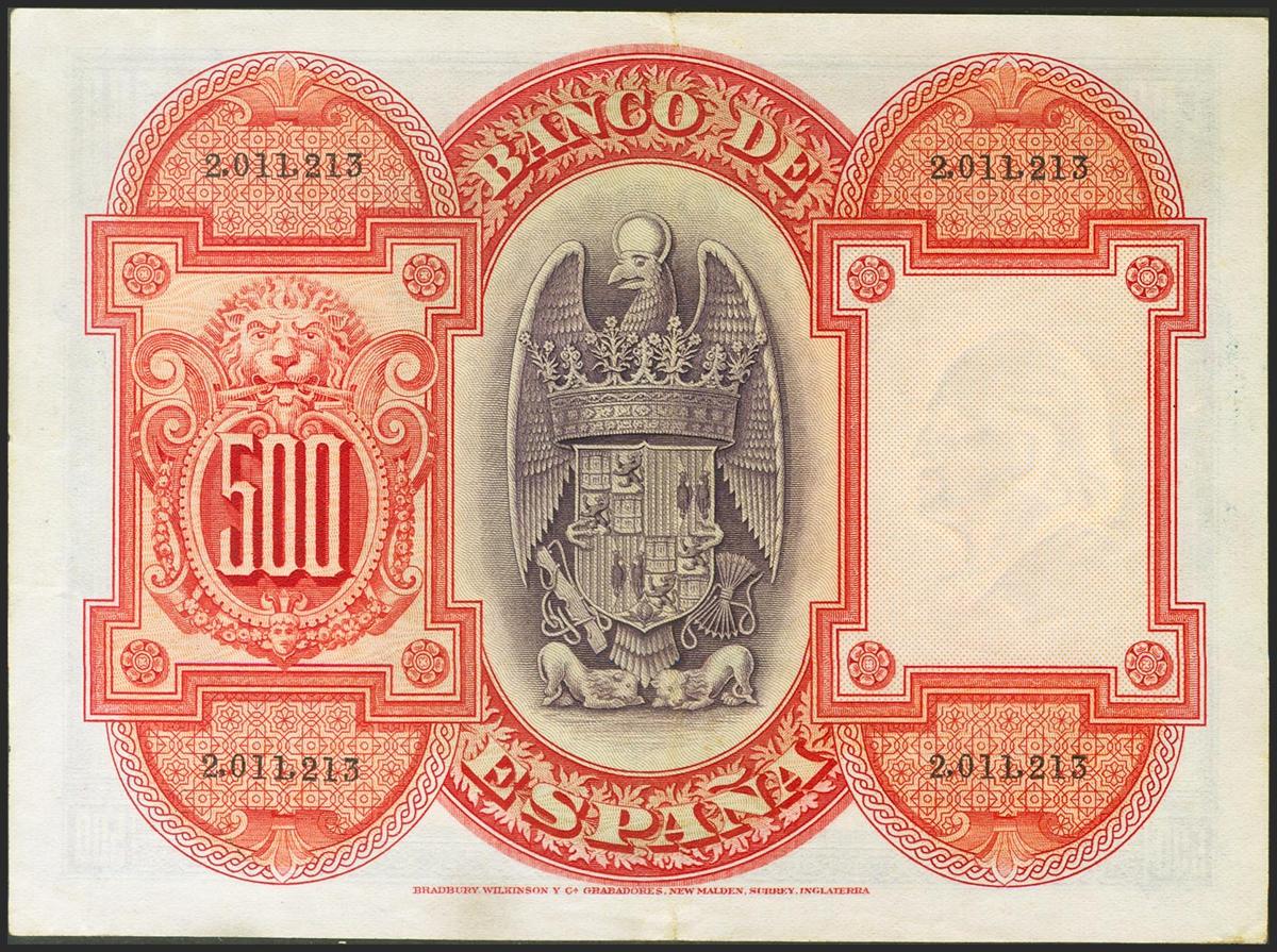 500 Pesetas. 24 de Julio de 1927. Sin serie y numeración posterior 1602000. (Edifil 2021: 352, Pick: 73c). Conserva parte de su apresto original. EBC.