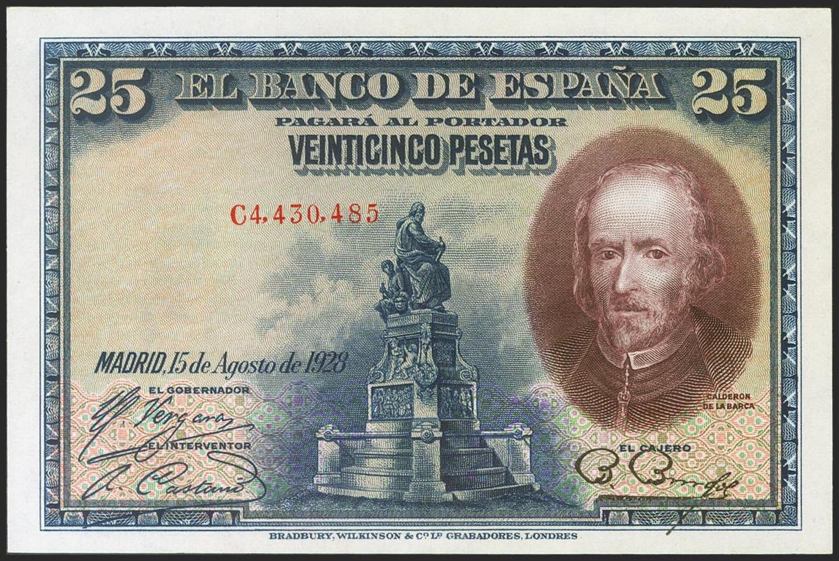 25 Pesetas. 15 de Agosto de 1928. Serie C. (Edifil 2021: 353). Apresto original. SC-.