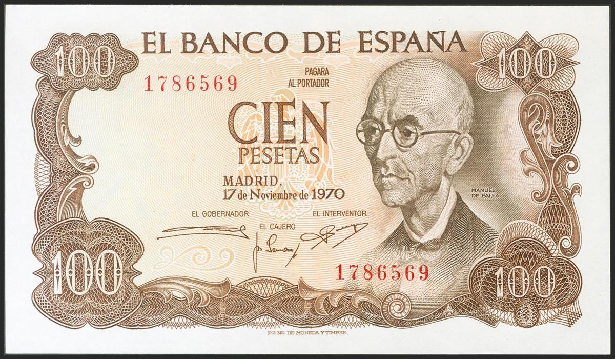 100 Pesetas. 17 de Noviembre de 1970. Sin serie. (Edifil 2021: 472). Apresto original. SC.