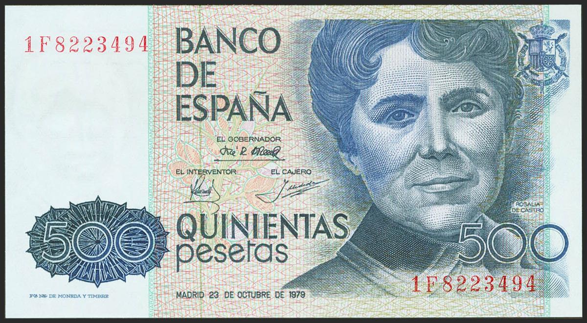 500 Pesetas. 23 de Octubre de 1979. Serie 1F. (Edifil 2021: 476a). SC.